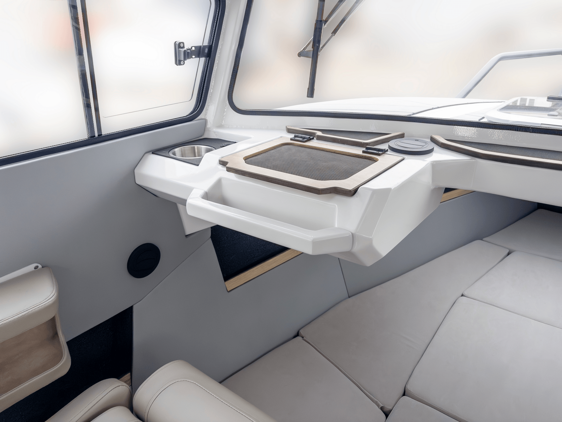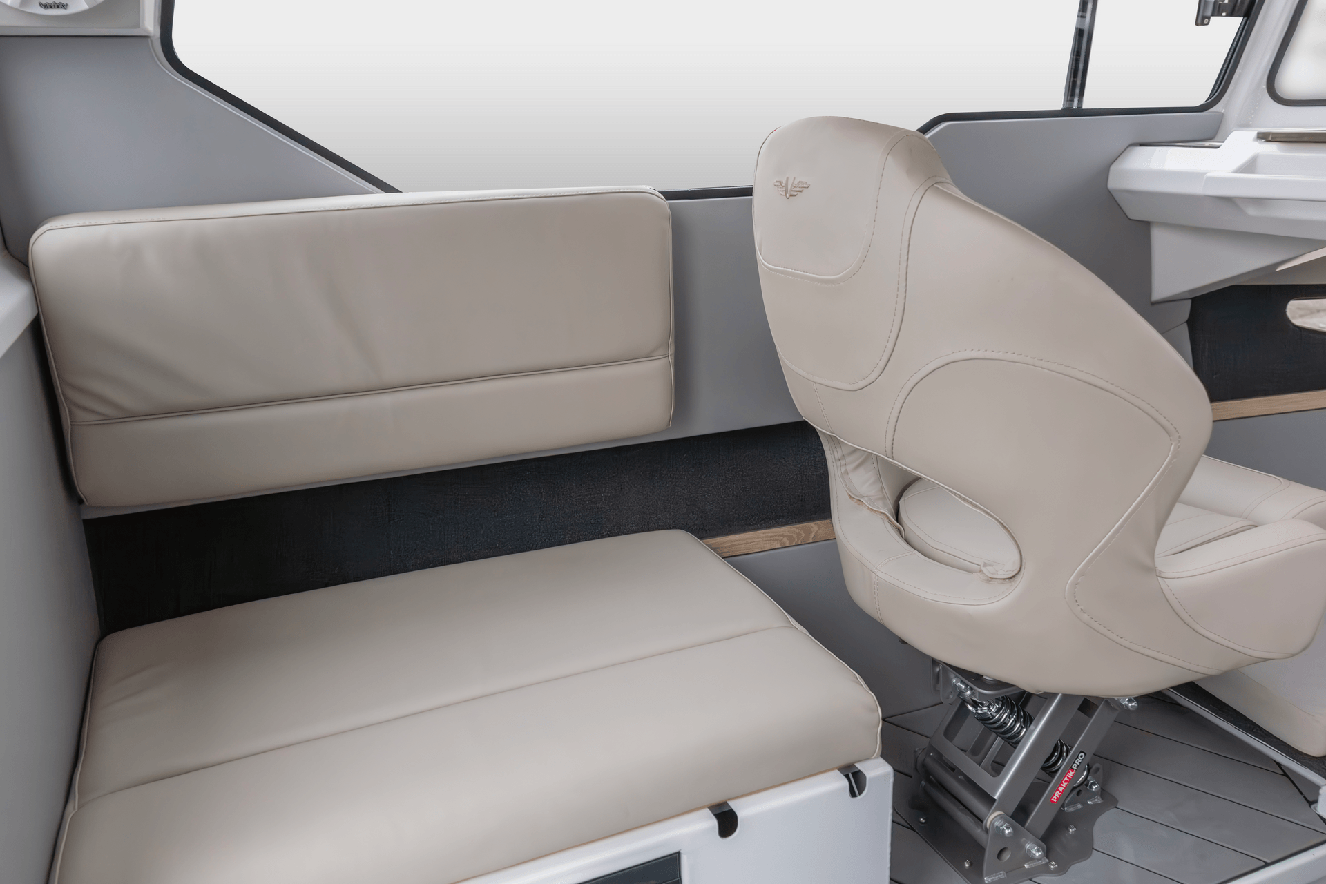 - Отделка морскими материалами сидений и салона бежевого цвета